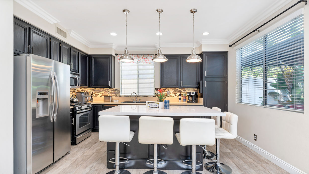 Step into the serene comfort of this Happy Home nestled within a tranquil corner of a gated community. Offering ample space and modern amenities, this residence boasts 4 bedrooms, a generous loft, 2.5 baths, and an oversized 2-car garage. Don't miss the private patio. Recently refreshed, this detached condo features designer paint, "hardwood" tile floors and a gourmet kitchen with endless cabinets. The entrance welcomes you with a graceful living area and an intimate dining space. The contemporary kitchen is equipped with stainless steel appliances, quartz countertops, and elegant crown molding. Relax in the inviting family room, complete with a cozy fireplace and mantle. Outside, the secluded backyard provides a peaceful retreat for al fresco dining or unwinding under the stars. Upstairs, discover the romantic primary suite. Indulge in the oversized tub, glass enclosed shower, separate vanity, and spacious walk-in closet. Additionally, three large secondary bedrooms, a hallway bathroom, linen closet, and individual laundry room are down the hall. Conveniently situated, this community offers access a refreshing pool, spa, and is in close proximity to top-rated schools. Plus, enjoy membership to Lake Mission Viejo for added leisure opportunities. Don't miss out on this ideal blend of comfort and convenience!